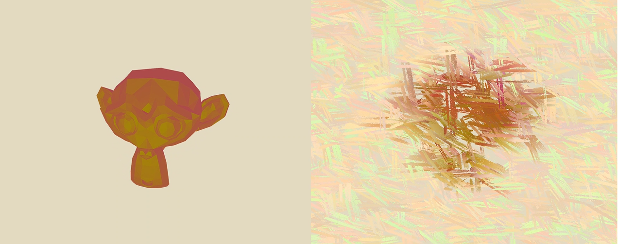 In this project, I explore NPR (Non-Photorealistic Rendering) techniques with a custom post process shader aiming to create the effect of brushstrokes on a model in realtime. I aimed to create a shader which was able to create the appearance of a painted scene utilizing artistic techniques with shaders in realtime. For research, I used refrence papers Paint By Numbers: Abstract Image Representations by Paul Haeberli [1] and Amy and Bruce Gooch's A Non-Photorealistic Lighting Model for Automatic Technical Illustration [2]. I implemented the NPR shaders in Opengl using C++, GLFW, and GLEW, as well as the boilerplate provided by Opengl Tutorial [3].