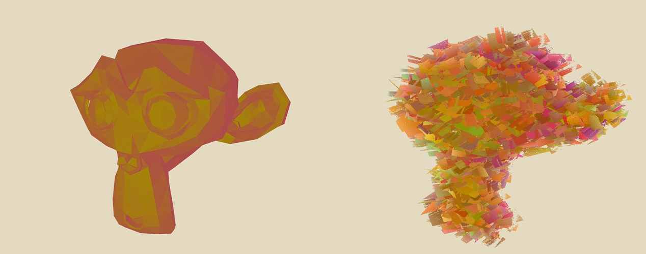 So now, I had to decide on how to approach the problem of rendering brushstrokes in realtime for my shader. I had initially thought about drawing individual brushstrokes on a texture using samples from the scene rendered to texture, however, doing this would be difficult to do in parallel on the GPU, as each brush stroke would have to be layered on the same shared texture. In addition, this would also create a new brush texture each frame, sure to be extrememly expensive.